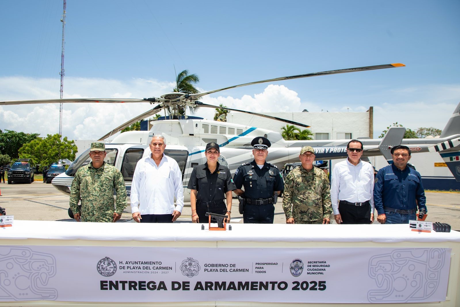 Playa del Carmen, Quintana Roo, 24 de junio de 2025.– En un paso decisivo para consolidar un municipio más seguro y con cuerpos policiales mejor preparados, la presidenta municipal Estefanía Mercado encabezó este martes la Entrega de Armamento 2025, como parte de una inversión histórica en materia de seguridad pública.