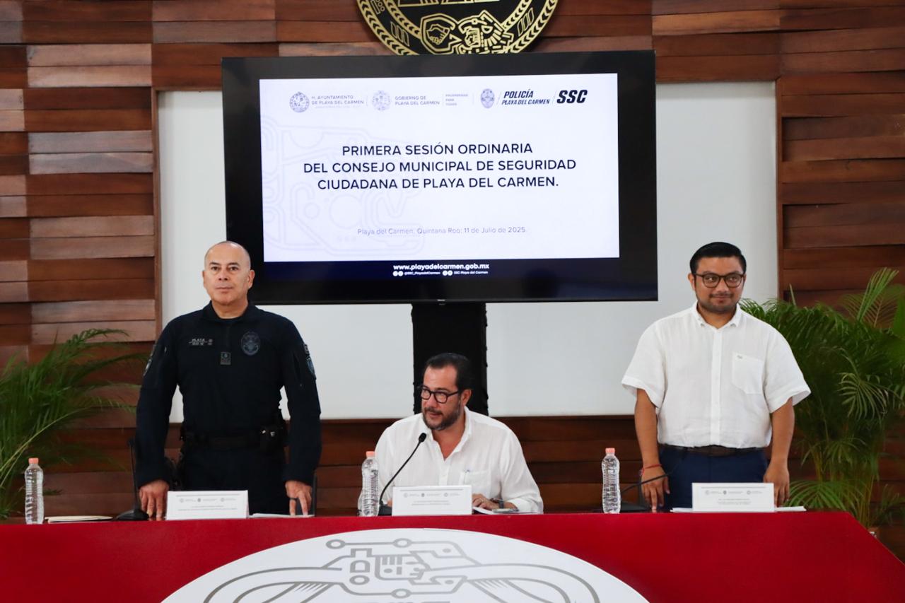 Playa del Carmen, Quintana Roo, 12 de julio de 2025.- En el marco de las acciones implementadas por el Gobierno de Playa del Carmen, encabezado por la presidenta municipal Estefanía Mercado, para fortalecer la seguridad, la legalidad y la participación ciudadana, se llevó a cabo la Primera Sesión Ordinaria del Consejo Municipal de Seguridad Ciudadana, correspondiente a la administración 2024-2027.