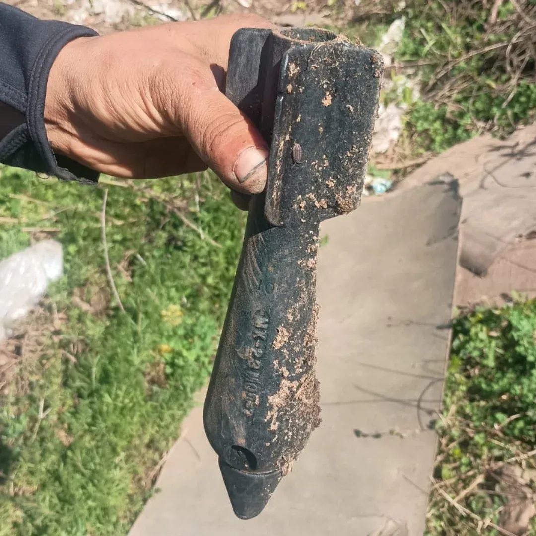 FUE A SACAR LOMBRICES Y ENCONTRÓ UN MORTERO, LO ENVOLVIÓ Y LO LLEVÓ A SU CASA