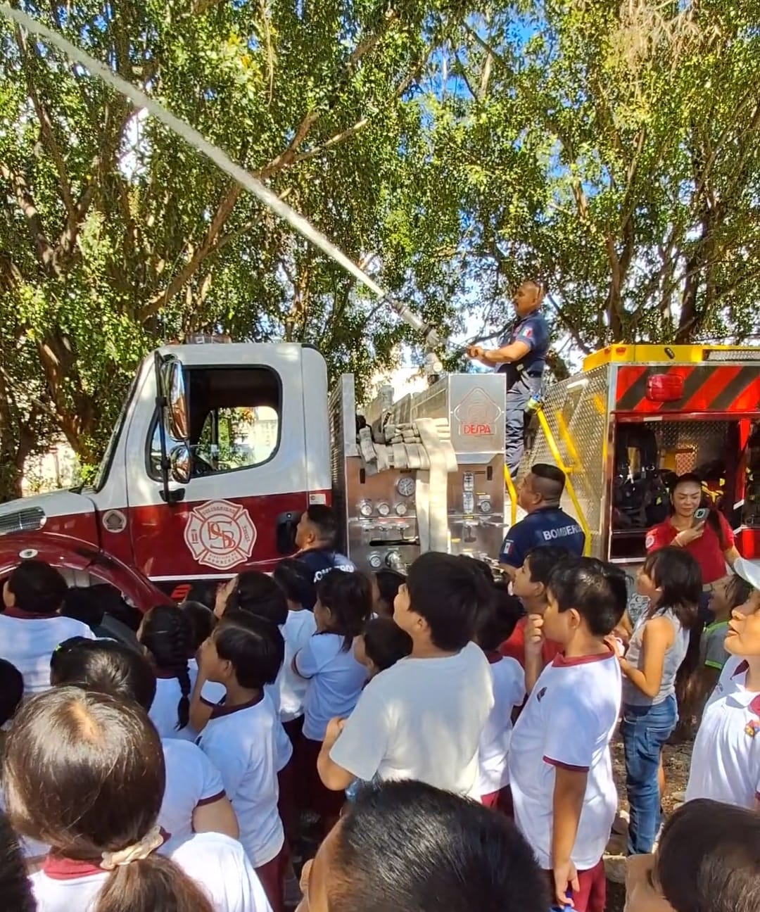 Durante la jornada, los estudiantes vivieron momentos de entusiasmo y alegría al conocer de cerca el equipo de rescate, el uso de mangueras y las funciones que desempeñan los bomberos en las emergencias, todo en un ambiente de convivencia segura y participativa.