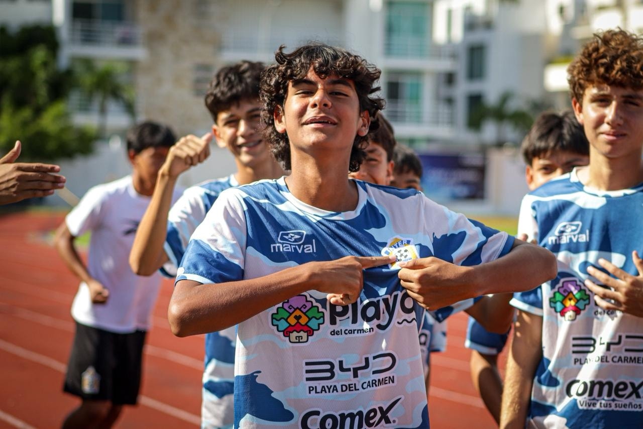 Playa del Carmen, Quintana Roo a 3 de Noviembre de 2025.- Como parte de la encomienda de la presidenta municipal, Estefanía Mercado de impulsar a las y los niños y jóvenes a través del deporte, el Inter Playa del Carmen como un club social y deportivo, hizo la entrega de uniformes de juego y de entrenamiento gratuitos a las Fuerzas Básicas del club.