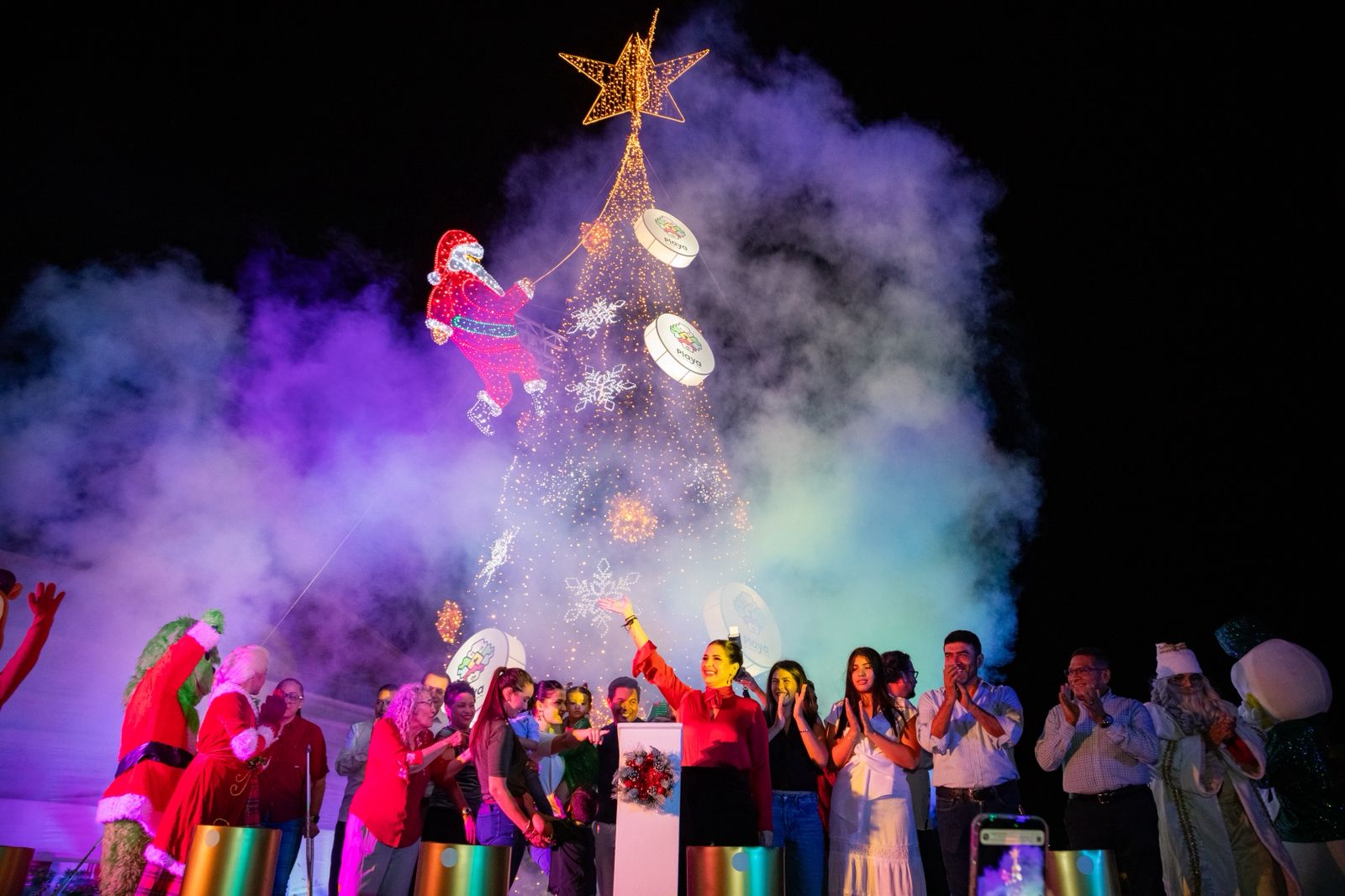 Playa del Carmen, Quintana Roo, 5 de diciembre de 2025.— Con el encendido del árbol navideño, la presentación de una cartelera cultural y artística, y ante una multitudinaria concurrencia en la Plaza 28 de Julio, la presidenta municipal Estefanía Mercado inauguró hoy la “Navidad Mágica 2025”, tradicional festival decembrino que atrae a miles de familias.