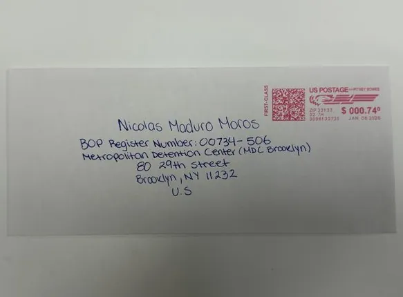 Quien lo desee, entonces, puede escribirle una misiva a Maduro (preso nmero 00734-506) o incluso a su esposa Cilia Flores (presa nmero 00735-506). Para hacerlo, hay que tener en cuenta que todo el correo que entra al Metropolitan Detention Center pasa por una inspeccin de seguridad. Por tanto, la correspondencia que contenga lenguaje violento, amenazas o insultos graves puede ser confiscada y no entregada a su destinatario. Asimismo, no puede contener ningn otro tipo de objeto.