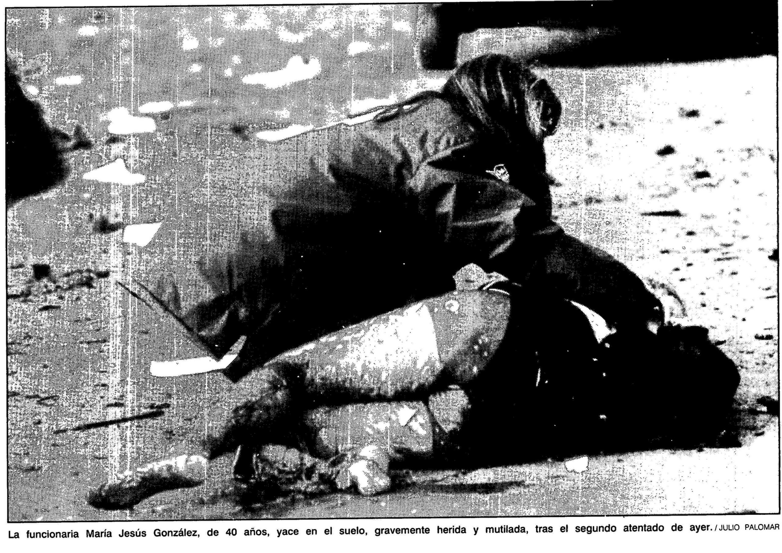 La funcionaria Mara Jess Gonzlez yace en el suelo, gravemente herida y mutilada, tras el atentado de ETA en Carabanchel, en 1991.