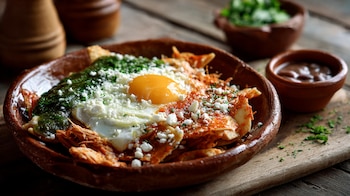- Chilaquiles: Este platillo son tortillas fritas cubiertas de salsa, queso, crema y, a veces, huevo o pollo. Su preparación y los acompañamientos los hacen muy calóricos y ricos en grasa.