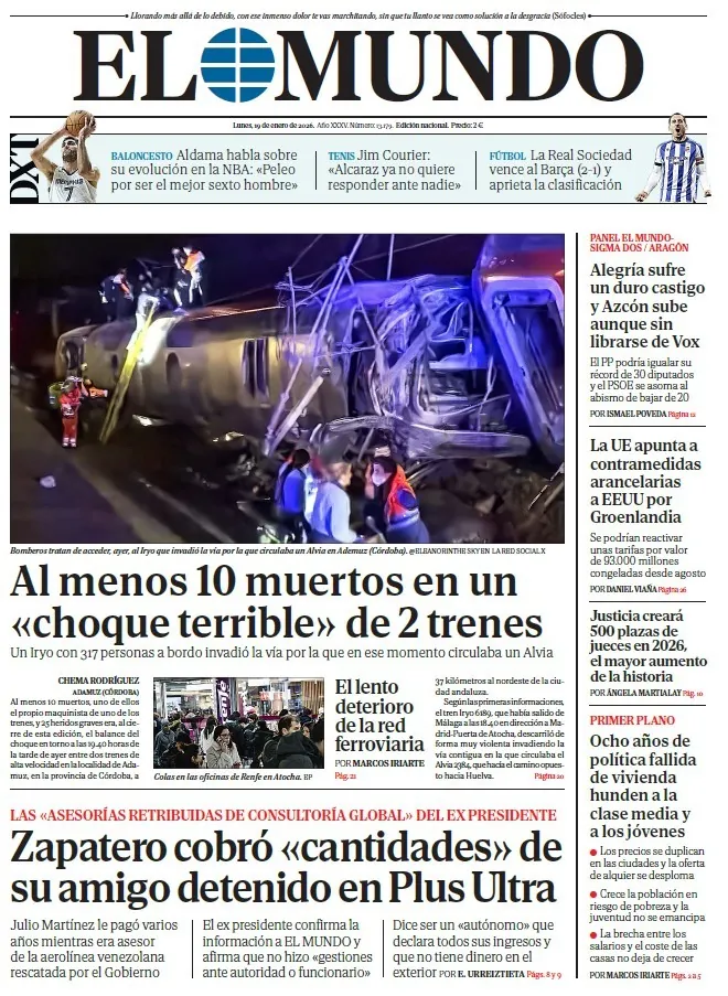 Portada de EL MUNDO del lunes 19 de enero de 2026