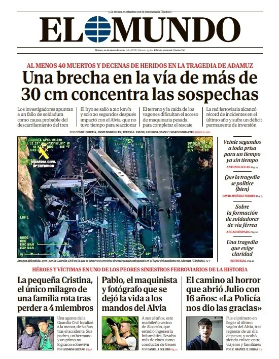 Portada de EL MUNDO del martes 20 de enero de 2026
