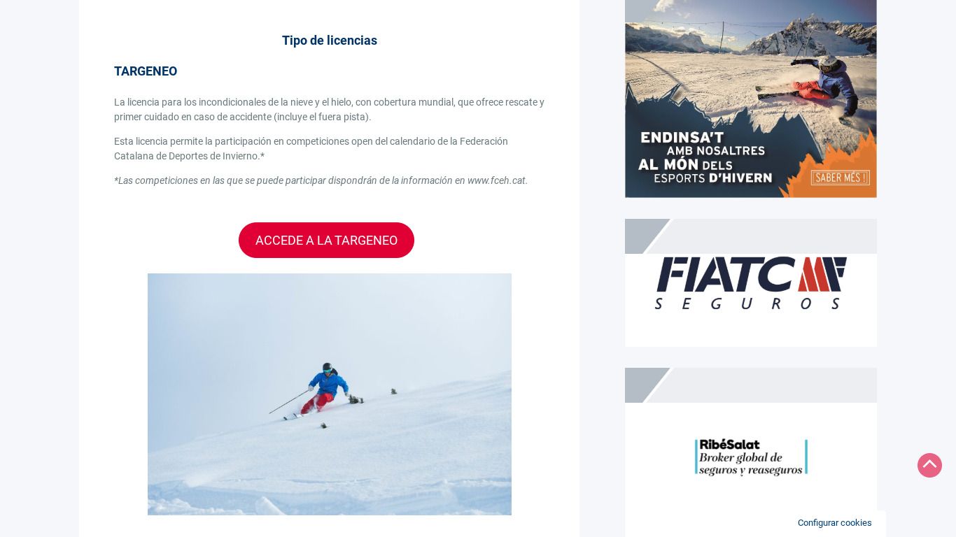 En la FCEH tienen dos licencias federativas de ocio, la Targeneo, que aún a día de hoy siguen poniendo en su web que cubre el esquí fuera de pista,
