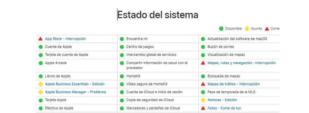 Apple ha confirmado que todos los servicios vuelven a estar activos después de esta caída generalizada que ha durado unas horas.