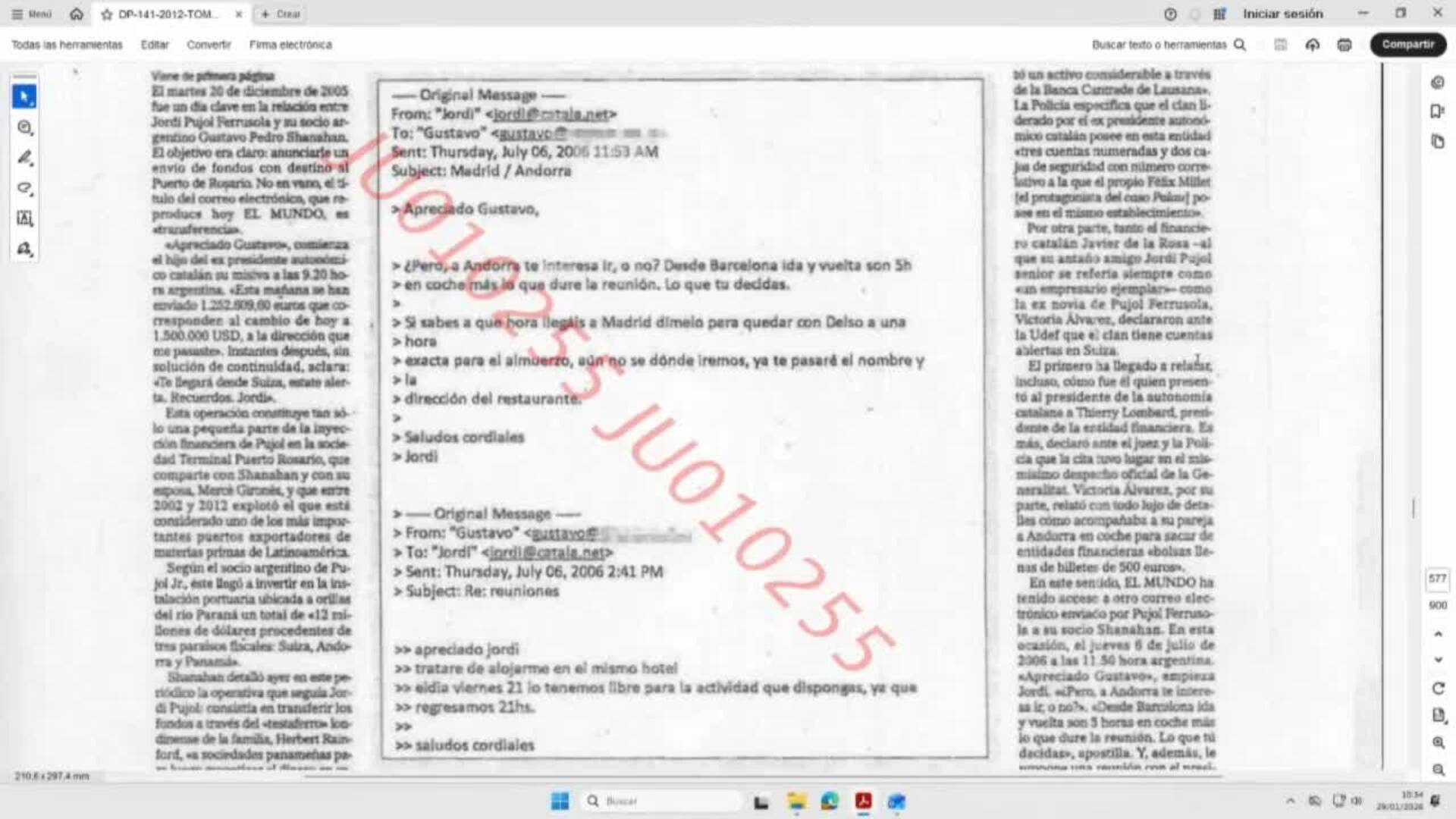 Madrid, 29 ene (EFE).- Esteban Urreiztieta, subdirector del diario ‘El Mundo’, ha evitado aclarar si fue la policía patriótica la que filtró en 2014 el “pantallazo” de una cuenta de los Pujol en Andorra que precipitó la confesión del expresident, aduciendo que fue un periodista … del diario ya fallecido quien consiguió la información. Urreiztieta, autor de varias informaciones que publicó ‘El Mundo’ sobre operaciones bancarias de Jordi Pujol Ferrusola vinculadas a paraísos fiscales, ha declarado este jueves como testigo ante el tribunal de la Audiencia Nacional que juzga a la familia y a una decena de empresarios por el origen de la fortuna oculta en Andorra. IMÁGENES CEDIDAS POR LA AUDIENCIA NACIONAL. TOTALES DE ESTEBAN URREIZTIETA, SUBDIRECTOR DE ‘EL MUNDO’, EL EMPRESARIO XAVIER PLANA Y LA JOYERA MONTSERRAT ESTEVE PUIG DURANTE SU DECLARACIÓN COMO TESTIGOS EN EL JUICIO CONTRA LA FAMILIA PUJOL Y UNA DECENA DE EMPRESARIOS EN LA AUDIENCIA NACIONAL.