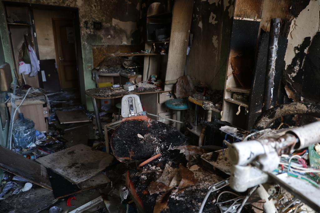 El gobernador public� im�genes en las que se ven consultorios m�dicos devastados por la onda expansiva de una explosi�n. Hay ventanas rotas, muebles destruidos y muchos escombros en el suelo. Fedorov tambi�n public� un video que muestra el exterior del edificio, su fachada de ladrillo da�ada y humo gris saliendo de una de las ventanas.