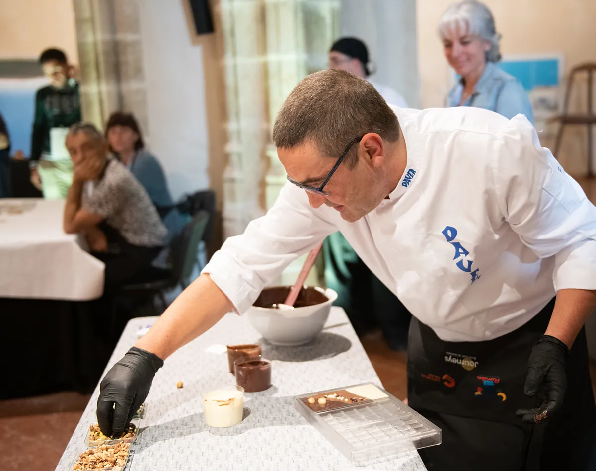 R. A nivel personal y creativo, el chocolate. El mundo del chocolate me gana mucho. Un ejemplo: hemos participado en una cata de vino donde hago el bomb�n para que se cate con �l. Si me dicen que es un rosado con notas de pimienta rosa, hacemos un bomb�n infusionado con esa pimienta que maride perfectamente. Hemos hecho cosas con regaliz, con frutos rojos… Y en cuanto a la gente, hay de todo. En Daver tenemos de todo desde bizcocho de manzana, amarguillos, borrachuelos de Ronda, bolitas de trufa blanca, carqui�olis, tartas personalizadas, bombones, tabletas de chocolate, etc.