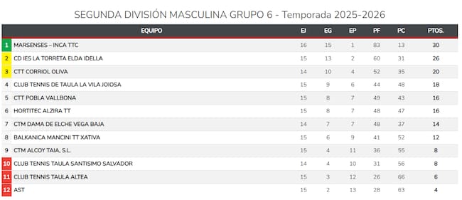 Clasificación grupo 6 Segunda Nacional