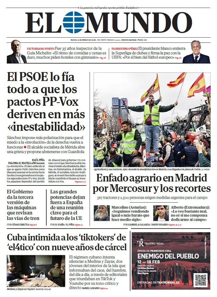 Portada de EL MUNDO del jueves 12 de febrero de 2026