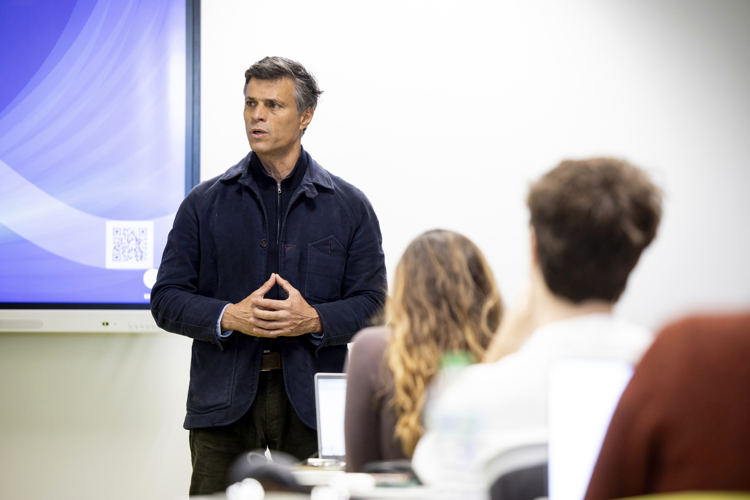 El pol�tico venezolano Leopoldo L�pez, en el M�ster de Periodismo de EL MUNDO.