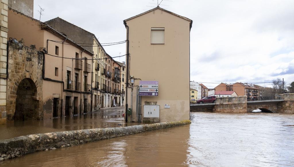 La crecida del Duero inunda una carretera contigua en San Esteban de Gormaz (Soria)