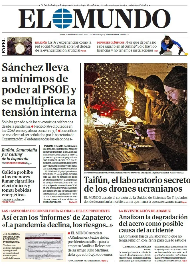 Portada de EL MUNDO del lunes 16 de febrero de 2026