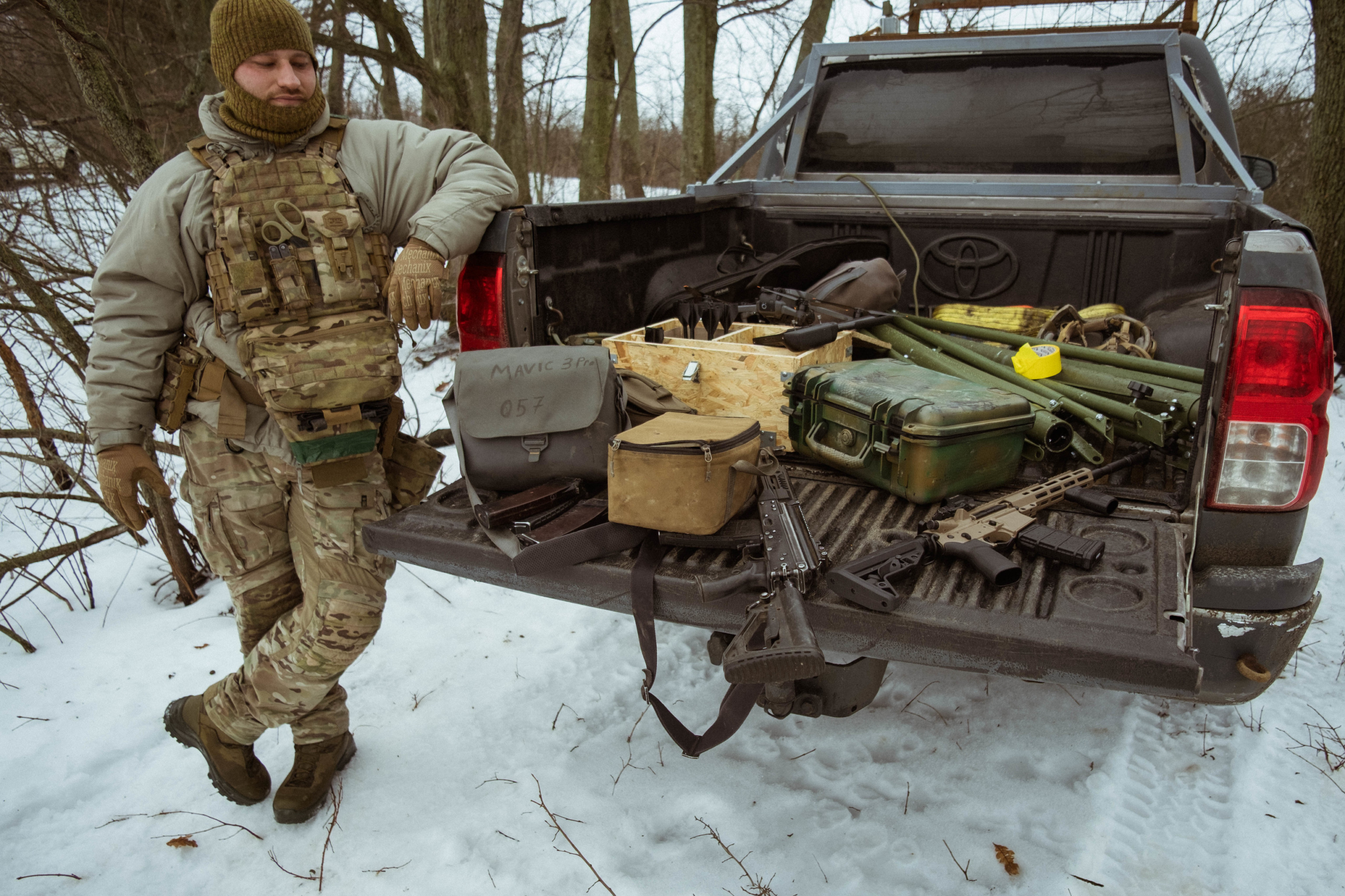 A ellos no les llama la atenci�n, pero uno mentir�a si dijera que no va con miedo. Hay algo atractivo en tal propuesta: intentar saber qu� se siente cuando un dron FPV avanza hacia ti como un depredador o cuando otro te lanza una granada a 30 metros de altura, pero sobre todo resulta interesante conocer c�mo deben responder los soldados a esa amenaza y a qu� peligros est�n sometidos en esta guerra. Cuando llegamos, dejamos el coche escondido bajo unos �rboles y ya vemos otros dos veh�culos bien camuflados con redes.