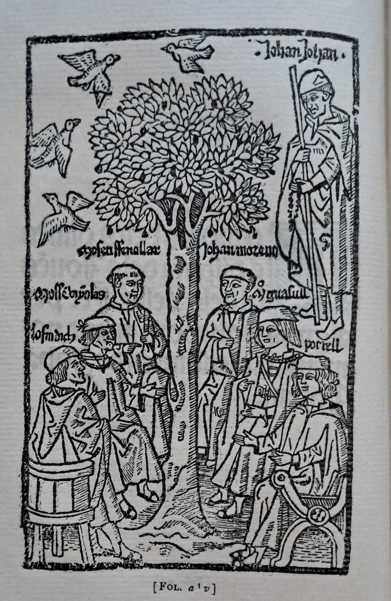 Grabado en el que aparecen los poetas Fenollar y Vinyoles