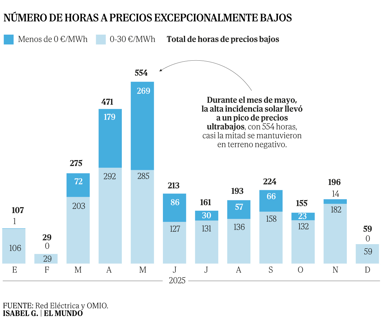 En 2025, se acumularon 2.637 horas a precios extraordinariamente bajos (inferiores a 30 euros/MWh), seg�n los datos recopilados por Appa, la patronal renovable. En m�s del 30% del total, los precios cayeron a valores negativos. Ese fen�meno ha llevado a muchos promotores a pisar el freno y dar por perdidos ciertos proyectos, incluso si eso conlleva asumir penalizaciones econ�micas. Porque es mejor pagar y desistir que producir y no cobrar.