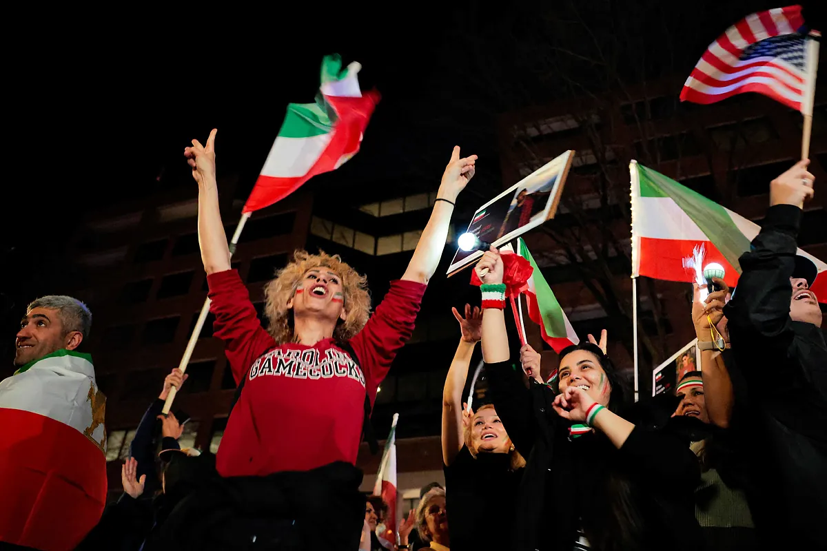 Decenas de personas se concentraron este s�bado frente a la Casa Blanca para celebrar, de manera un tanto contenida, la muerte del l�der supremo iran�, el ayatol� Ali Jamene�, anunciada por presidente de Estados Unidos, Donald Trump, tras los ataques conjuntos contra la Rep�blica Isl�mica.