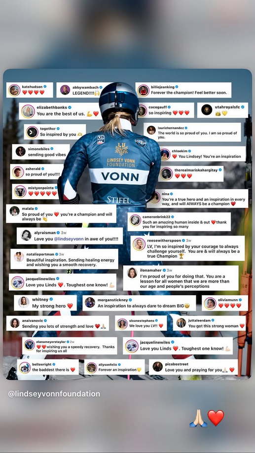 Lindsey Vonn agradece los apoyos que recibe