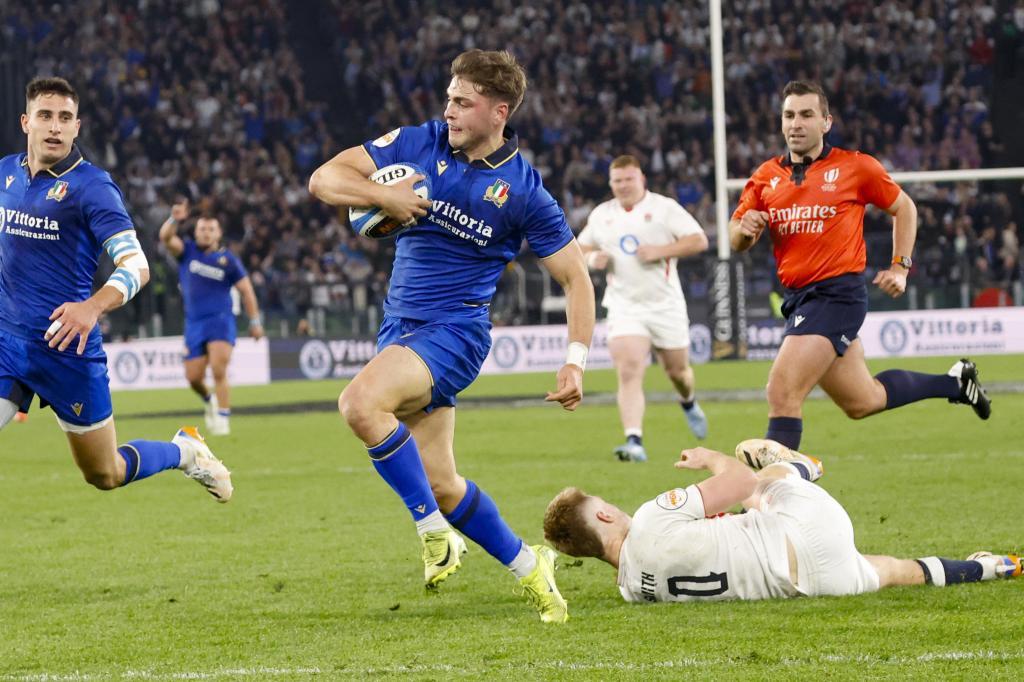 Leonardo Marin corre para anotar el ensayo de la victoria italianaEfe | Epa