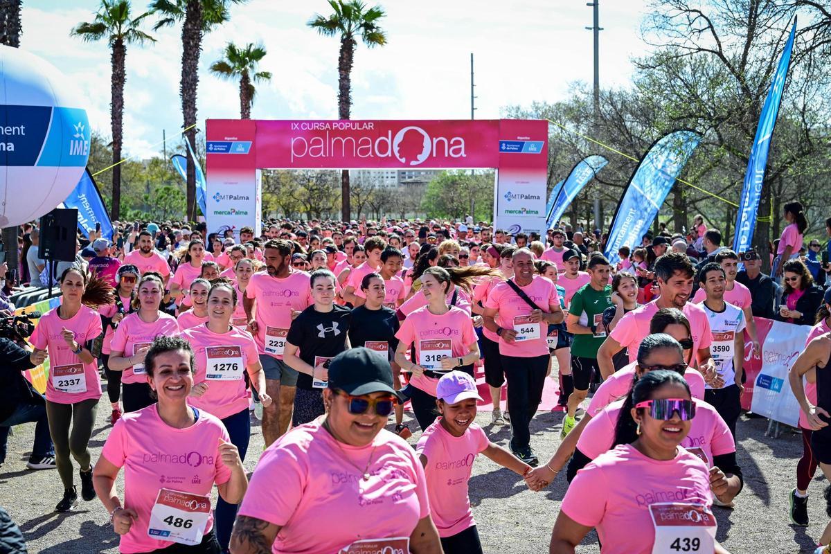 Coincidiendo con el Día Internacional de la Mujer, el parque de la Riera ha acogido este domingo la novena edición de la Carrera Popular Palmadona, un encuentro que este año ha contado con la participación de más de 4.500 personas.