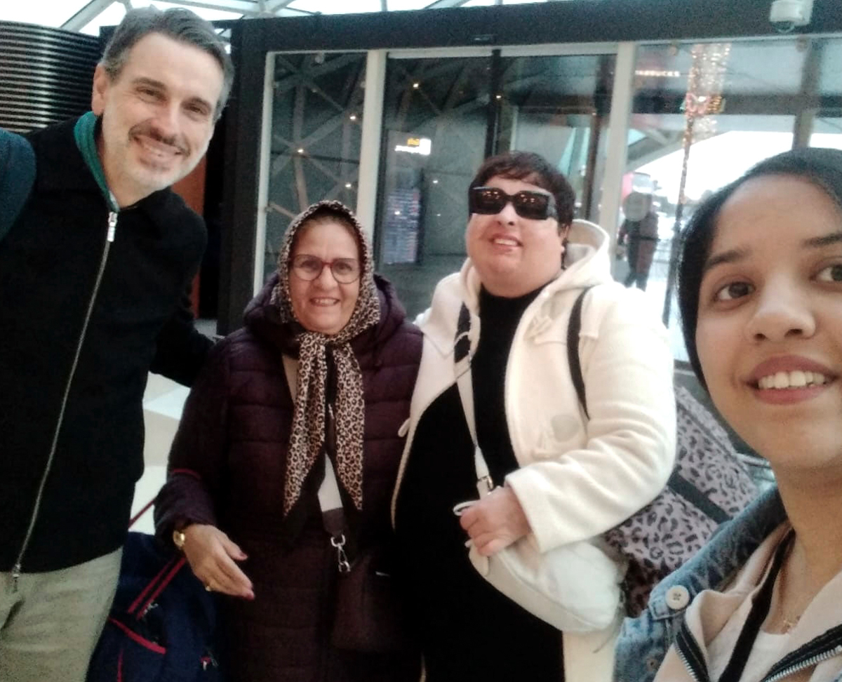Ameneh (con gafas de sol), su madre, el embajador espa�ol y la estudiante Marjon en el aeropuerto de Bak�.