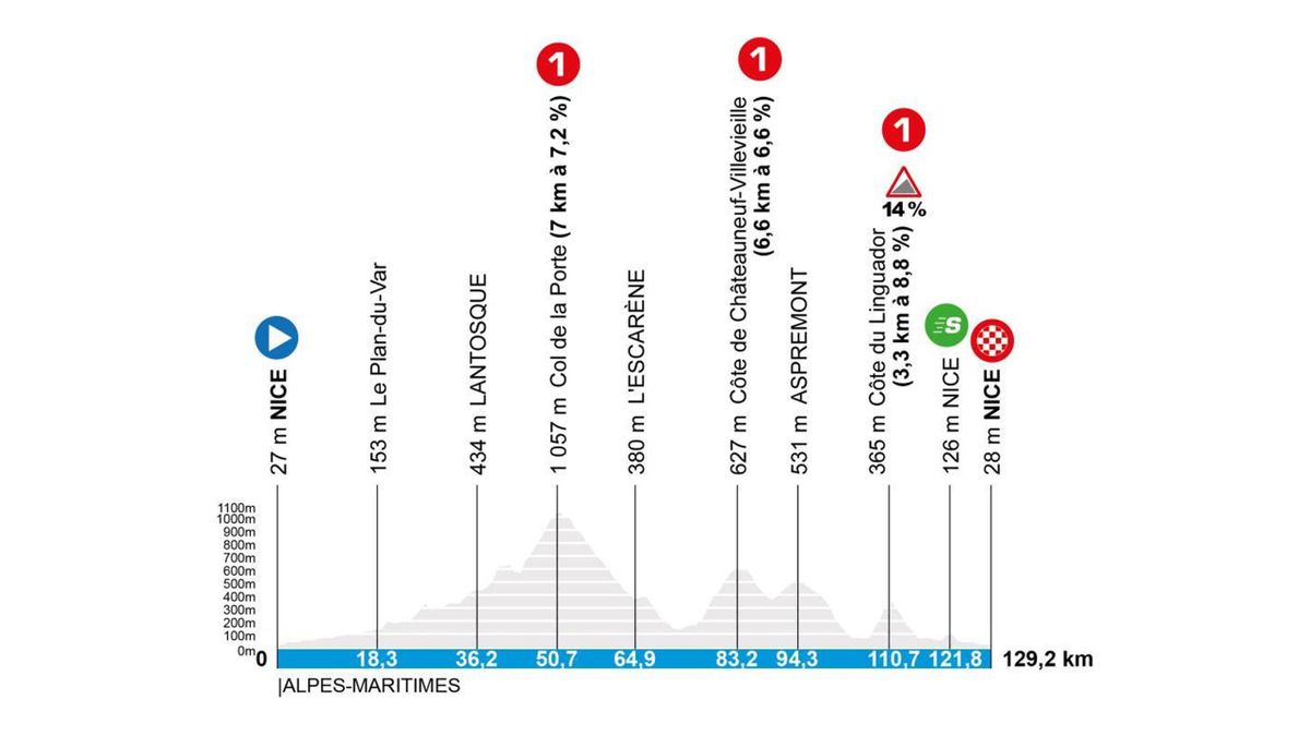 Las ascensiones a Porte (1ª), Châteauneuf-Villevielle (1ª) y el decisivo Linguador (1ª; 3,3 km al 8,6%), situado a 19 km de la meta, depararán los últimos ataques entre los hombres de la general y una frenética persecución hasta el Paseo de los Ingleses de Niza.