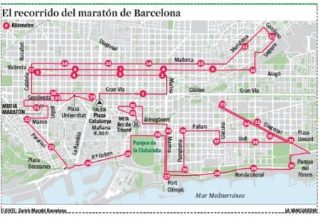 –El recorrido actual es lineal, con un desnivel positivo de 76 metros en el primer maratón y de 56 metros en el segundo, con apenas 39 curvas en sus 42 kms, y con largas rectas, de hasta cinco kilómetros, en València, Gran Via, Aragó o la Diagonal –dice Cristian Llorens.