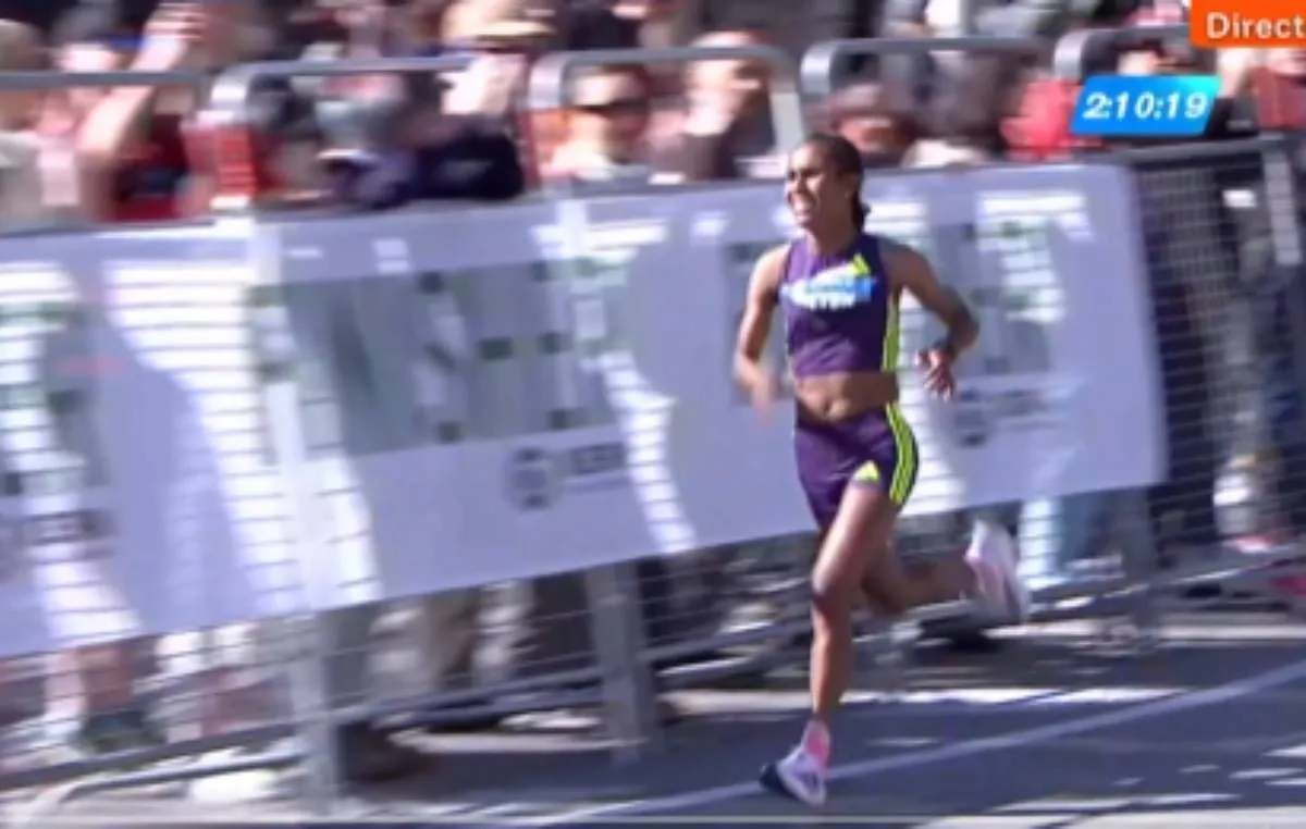 Adem�s, durante buena parte de la carrera la atleta et�ope lleg� a amenazar el r�cord del mundo que mantiene la keniana Ruth Chepngetich desde el Marat�n de Chicago 2024, con una marca de 2 horas, 9 minutos y 56 segundos.