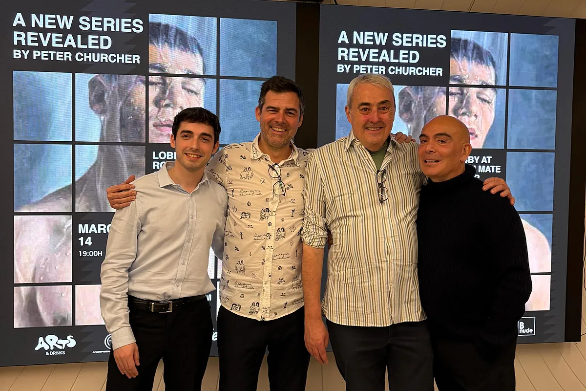 Adquiri� uno de los cuadros, pues se confiesa admirador de la obra de Peter Churcher, a quien acompa�aban su representante, Nicolas Andersen, due�o de la galer�a Bnude Art Gallery en la localidad barcelonesa de Sitges, y el socio y pareja de este, V�ctor Alba.