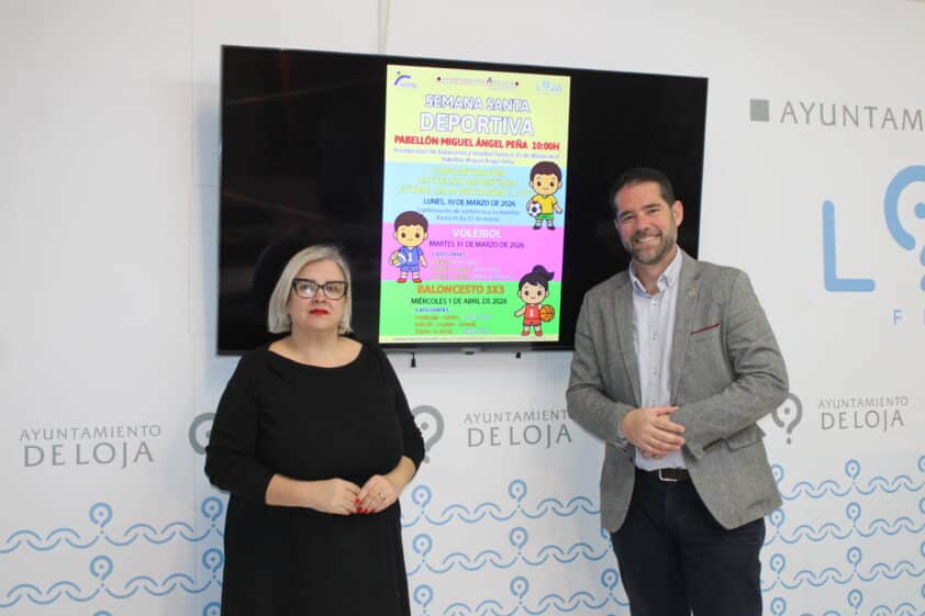 La concejala de Deportes, Encarnación Murillo, y el alcalde, Joaquín Ordóñez, han animado a los jóvenes lojeños a participar en esta nueva edición de la Semana Santa Deportiva.